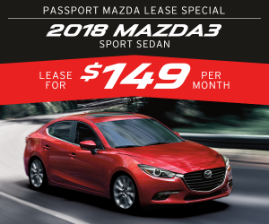Lease the 2018 Mazda3 Sport Sedan for only $149 per month.