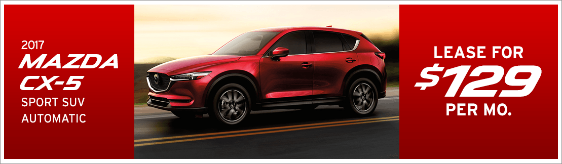Lease the 2017 Mazda CX-5 Sport SUV Automatic for only $129 per month for 33 months.