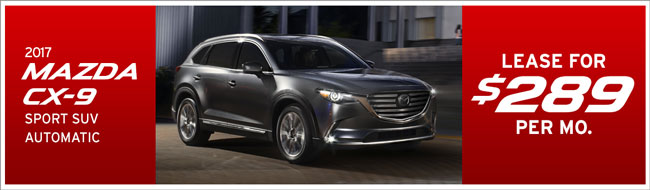 Lease a 2017 Mazda CX-9 Sport SUV Automatic for only $289 per month. Click here to view our current inventory.