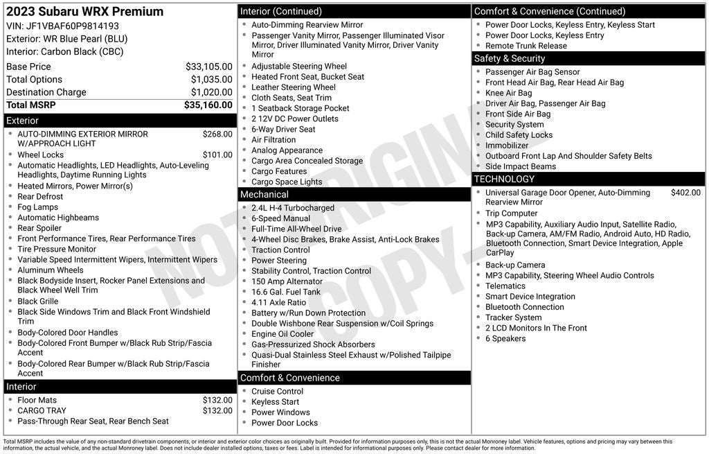 - Vehicle Name: Subaru WRX