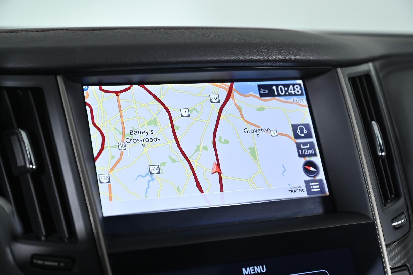 - Radio: INFINITI InTouch w/Navigation -inc: 16 speaker Bose Performance Series audio w/Bose Centerpoint simulated surround, dual HD display, navigation w/lane guidance, 3D building graphics, premium traffic and MapCare, voice recognition for navigation functions, including 1-shot voice destination entry, wireless Apple CarPlay, Siri Eyes Free, Android Auto, Bluetooth® hands-free phone system w/text messaging assistant, voice recognition for audio, Bluetooth® and vehicle information, streaming audio via Bluetooth®, 2 illuminated USB connection ports (1 type A, 1 type C), auxiliary audio input, HD Radio, SiriusXM radio w/advanced audio features w/3 month complimentary trial, SiriusXM Traffic w/3 month complimentary trial access to real-time traffic information, SiriusXM Travel Link w/3 month complimentary trial access to weather, fuel prices, stock prices, sports scores, movie listings and parking and Wi-Fi hotspot